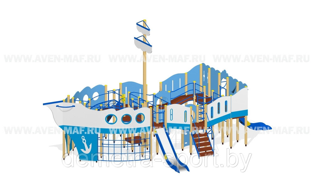 Игровой комплекс Г-73 м представляет собой игровой комплекс для тематических игр и физического развития предназначен для детей в возрасте от 6 лет. Комплекс представляет Корабль. Комплекс позволяет детям окунутся в историю мореплавания и ощутить себя настоящим покорителем морей. Изделие представляет собой сборно-разборную каркасную конструкцию из деревянных столбов, установленных на забетонированные стойки.