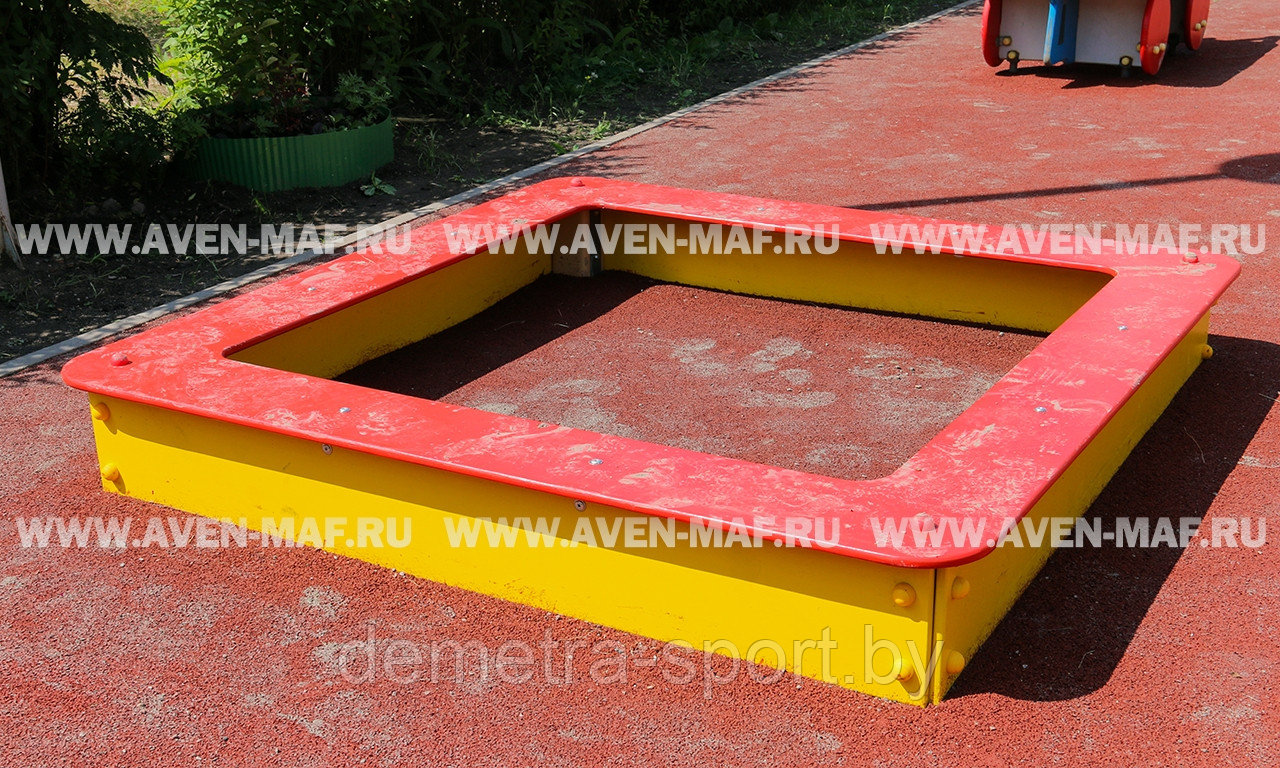 Песочница уличная 1490х1490 мм – желто-красного цвета. Игры с песком развивают мелкую моторику, фантазию и усидчивость.